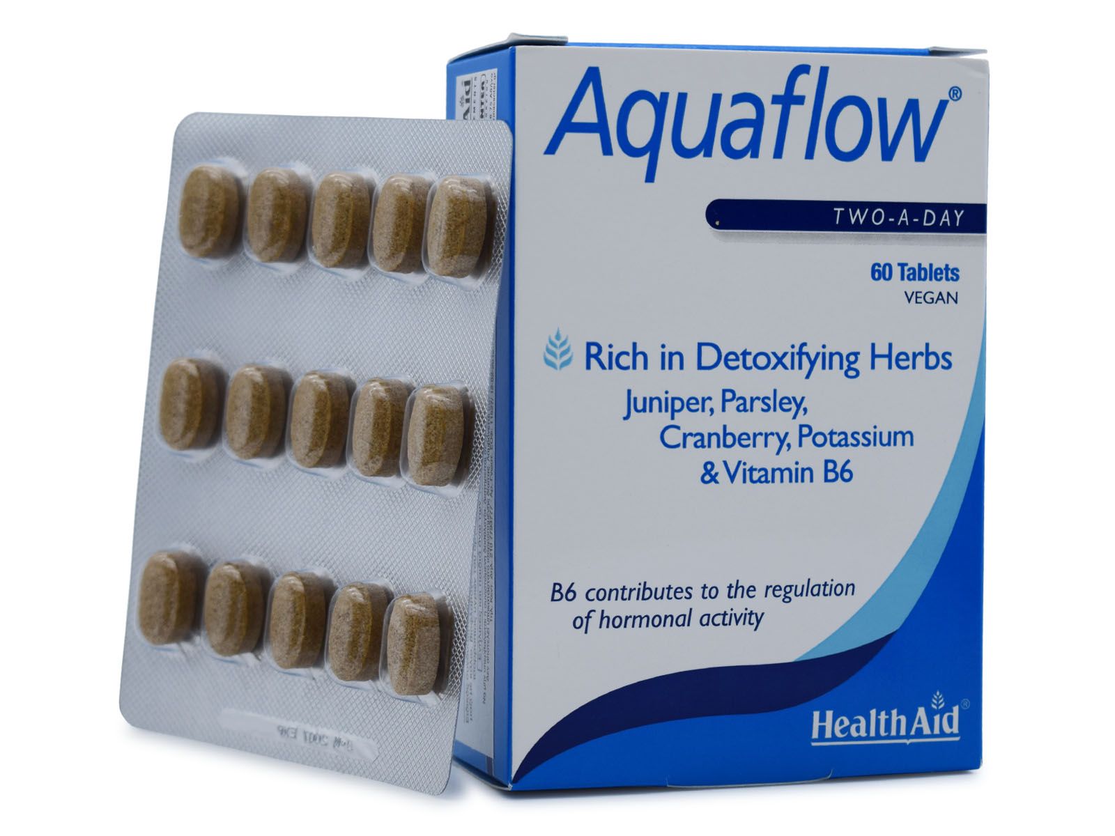 Το Health Aid Aquaflow είναι ένα συμπλήρωμα διατροφής με ήπια διουρητική δράση. Περιέχει τιτλοδοτημένα εκχυλίσματα βοτάνων, μαζί με κάλιο και βιταμίνη Β6 η οποία συμβάλλει στη ρύθμιση της ορμονικής δραστηριότητας του οργανισμού, στην οποία πολλές φορές μπορεί να οφείλεται η κατακράτηση υγρών.